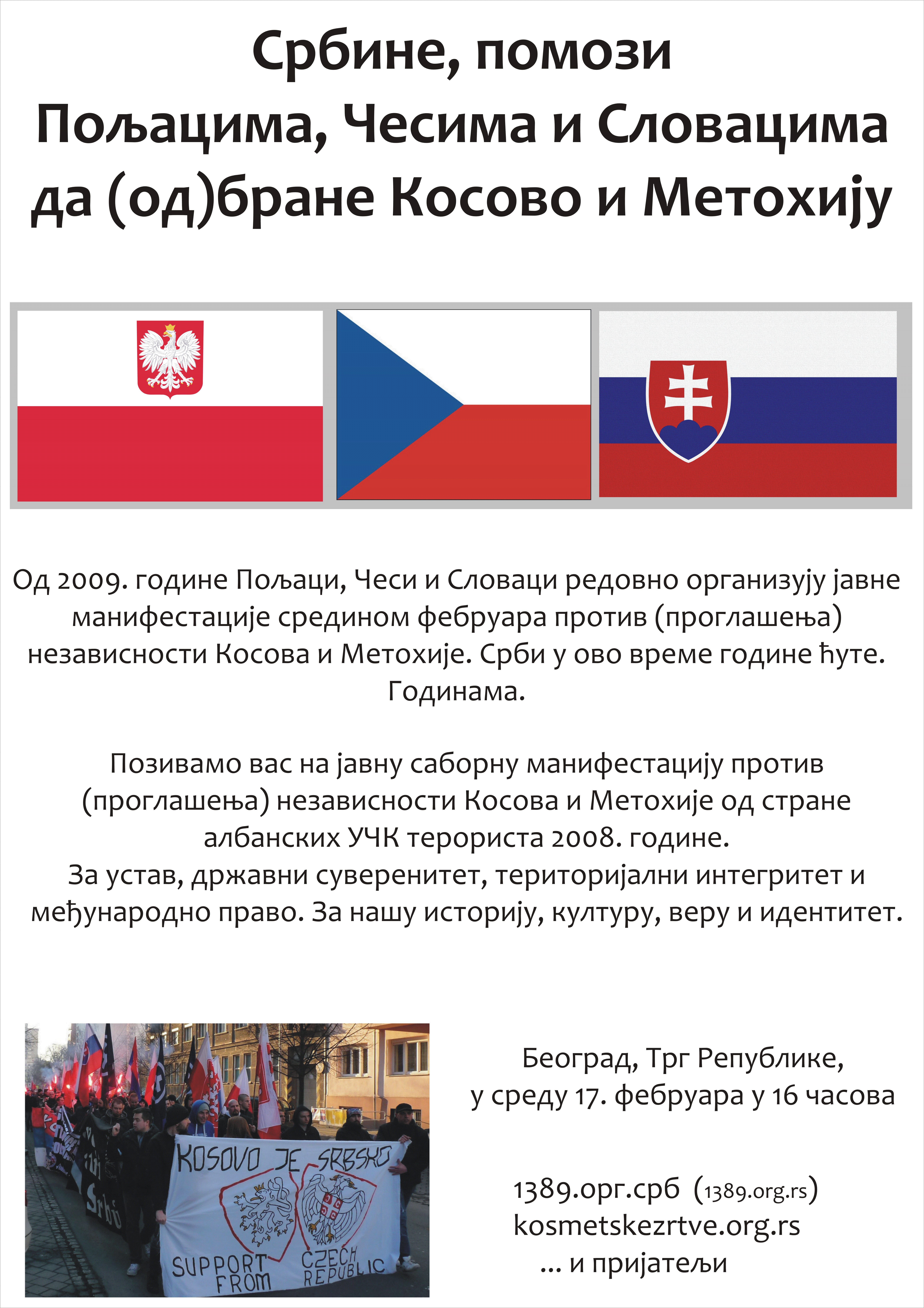 Србине, помози Пољацима, Чесима и Словацима да (од)бране Косово и Метохију