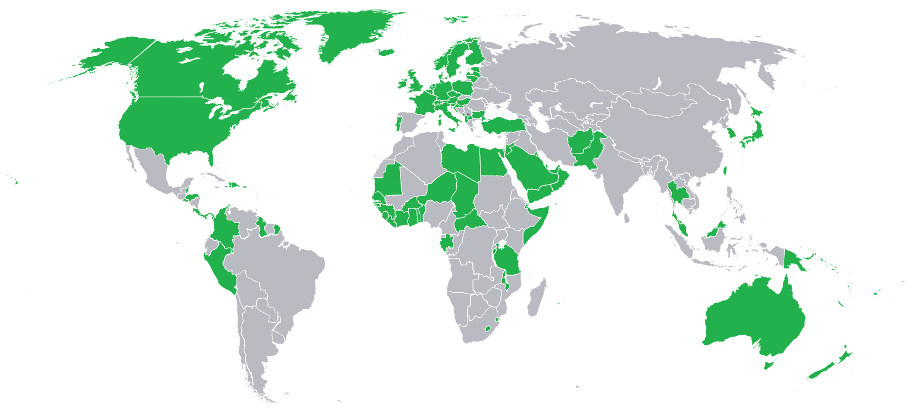 Државе које су признале Косово и Метохију (зеленом бојом):