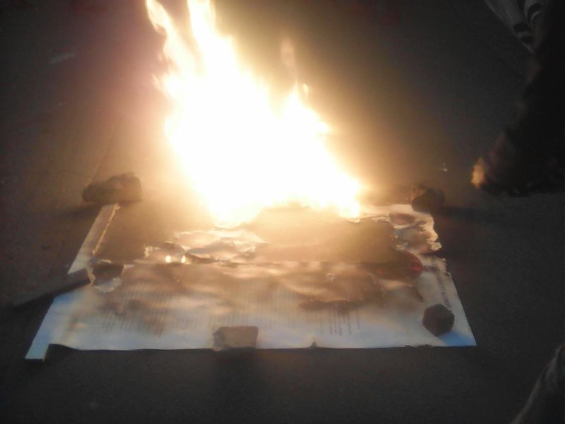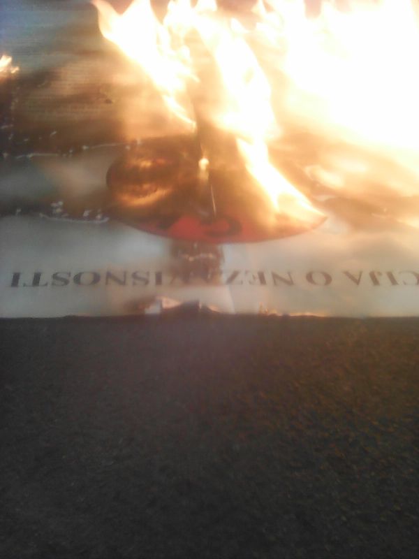 Србија и Срби се прикључују другим народима у одбрани Косова и Метохије! Истакнута је видно приштинска декларација о проглашењу независности Косова и Метохије од 17.2.2008., прочитани су најважнији делови и објашњени, а онда је овај невалидни, нелегални и нелегитимни документ који је у супротности са Уставом Србије, међународним правом, општом етиком и историјском правдом свечано запаљен и потпуно је уништен у ватри - од њега је остао само пепео.