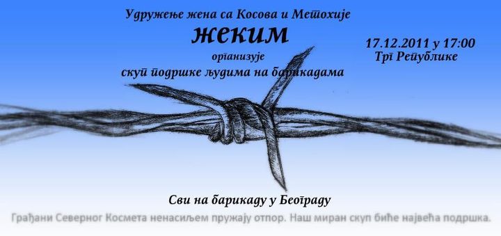 Барикаде на Косову и МетохијиБарикаде на Косову и Метохији је поставио српски народ на северу покрајине, како би се спречио превоз цариника приштинских сепаратистичких власти на административне прелазе између севера покрајине и централне Србије. Блокирана су пре свега возила ЕУлекс-а, а затим и КФОР-а и приштинских органа. Барикаде је подржао и патријарх српски Иринеј - оне су народне, а не политичке нити криминалне. Барикаде су неопходне за одбрану суверености, територијалног интегритета и Устава Србије, а оне уједно бране и резолуцију СБ УН 1244, кредибилитет УН и међународно право.