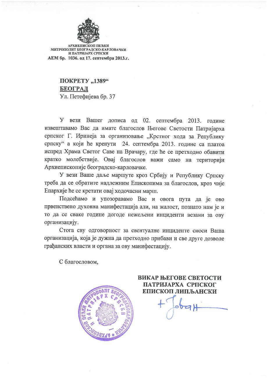 Благослови патријарха Иринеја за Крстни ход за Републику Српску