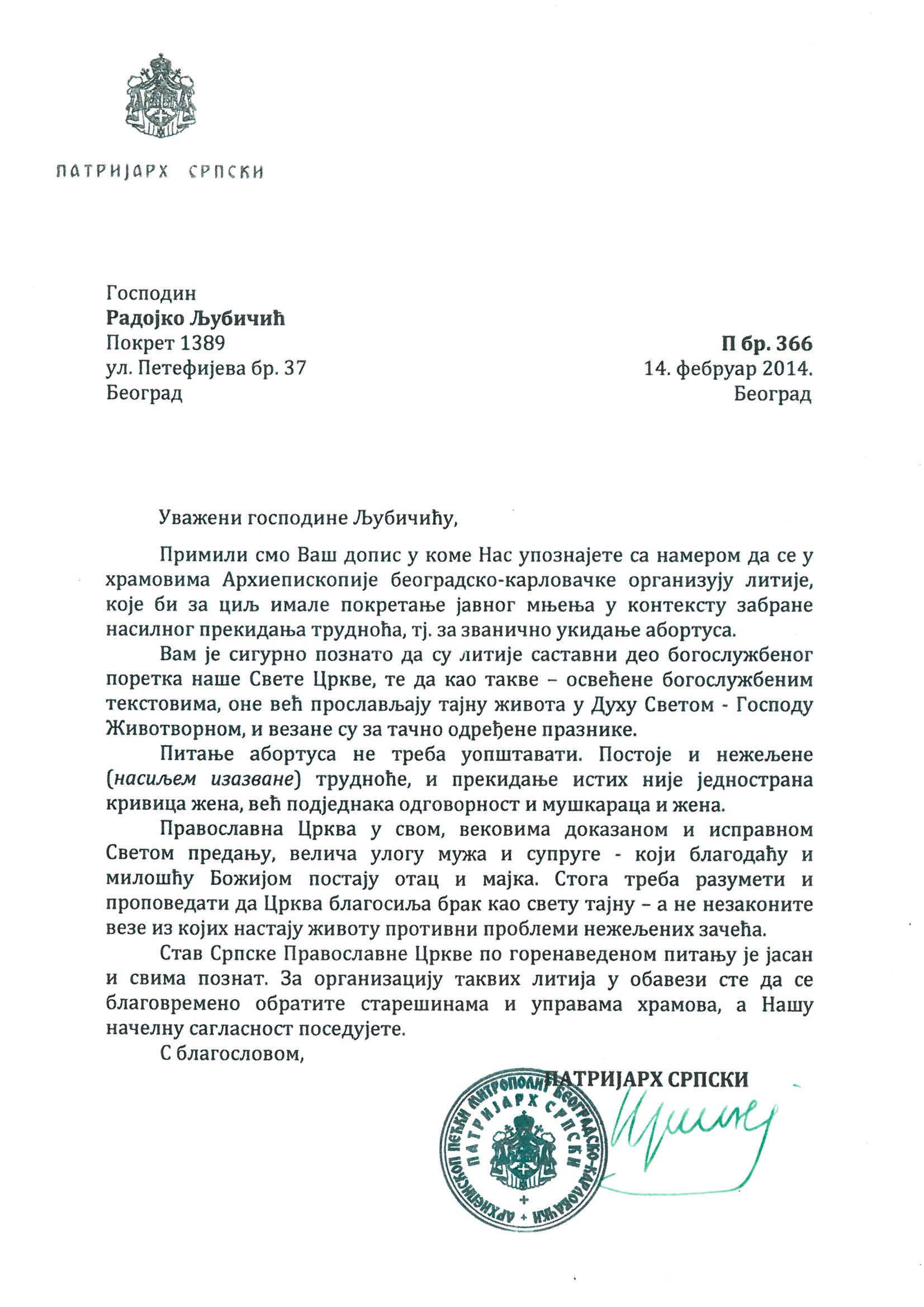 Благовестна литија за окончање убијања деце абортусом почела око 10:30 улицама Краља Петра, Кнез Михаиловом, итд. Испред Дома Народне скупштине око 11:30 прочитане су молитве Господу Богу и Пресветој Богородици за забрану абортуса. Литији присуствује и господин Сергеј Чесноков са супругом из Русије који координира Црквене и друштвене организације из сфере заштите људског живота у око 50 градова Русије, Белорусије и Украјине. Он је дошао у Србију да би подржао Благовестну литију и пренео нам своја успешна искуства у раду.