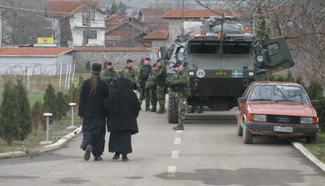 Kosovska policija se nije mesala u sukob vec je samo nastojala da razdvoji dve grupe. Utom dolaze i pripadnici Kfora, svedski bataljon, koji prakticno izguravaju iz manastirskog dvorista napadace, a potom zakljucavaju manastirsku kapiju.