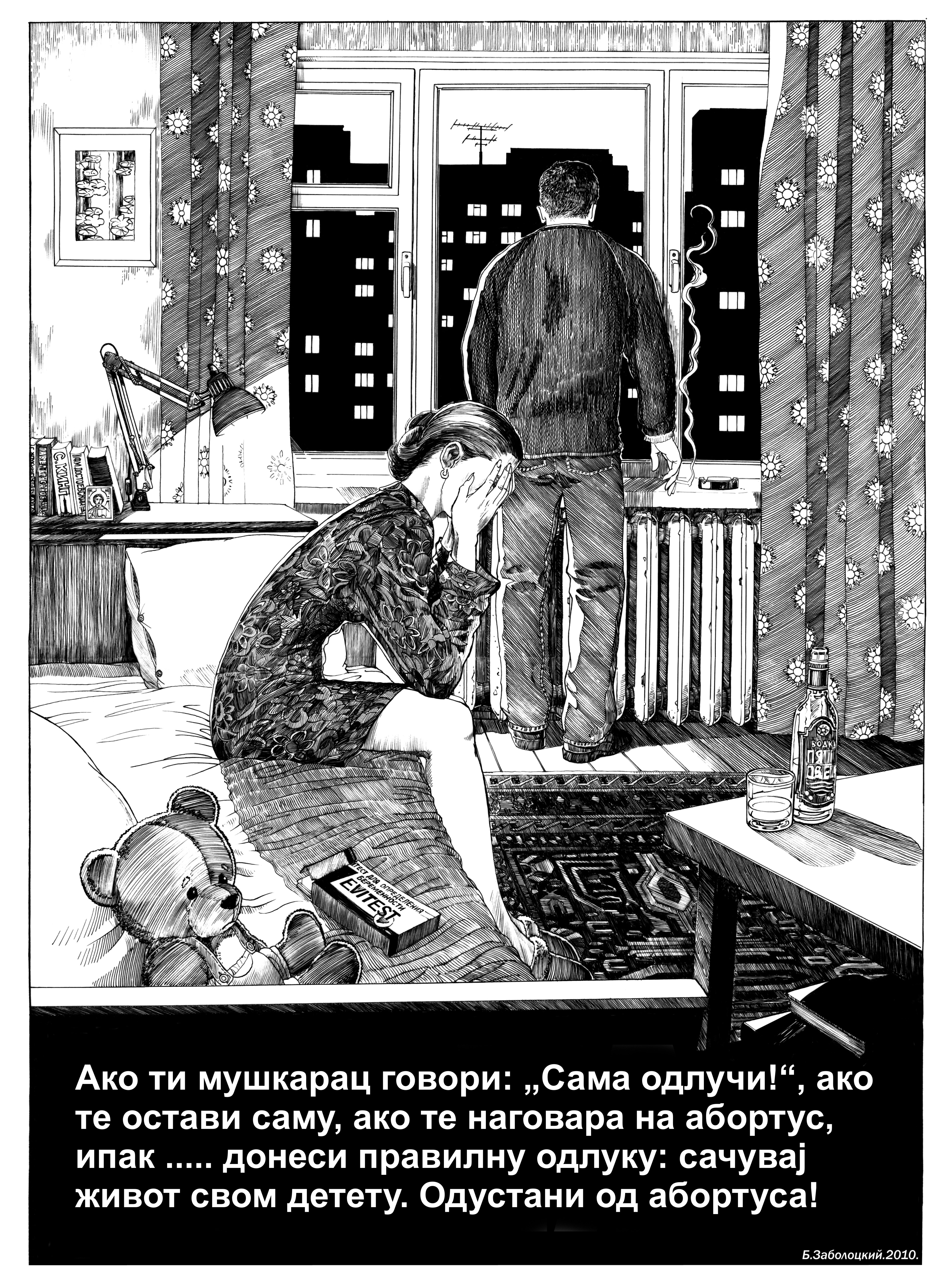 Током 2017. године Иницијатива за забрану абортуса започела је сарадњу са Борисом Заболоцким са циљем да се графички уметнички рад овог великог дизајнера преведе на српски језик и промовише на просторима где се говори српски језик.