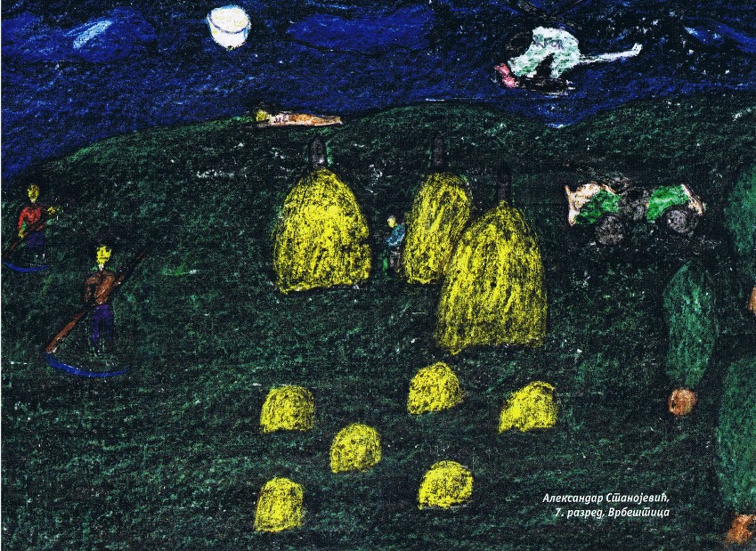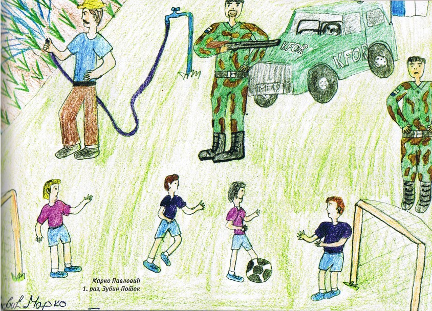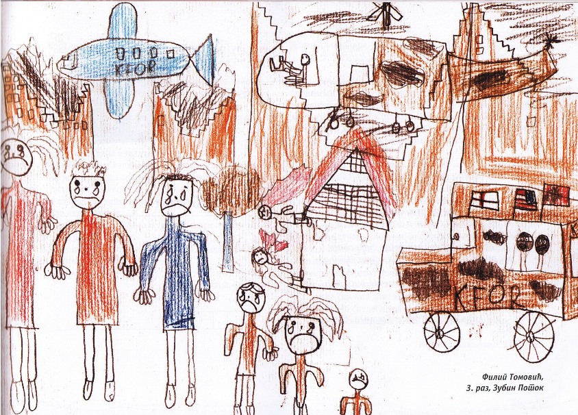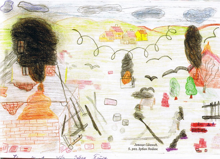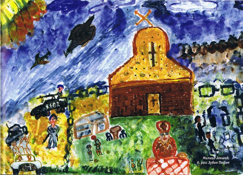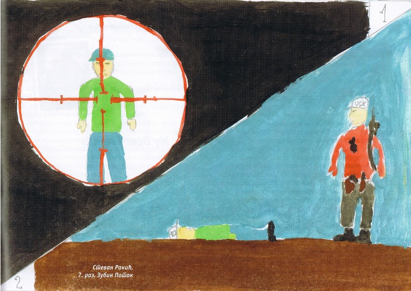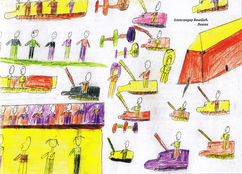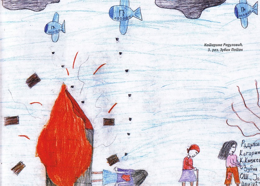 Цртежи деце са Косова и Метохије26.1.2019. Ситуација на Косову и Метохији је последње две деценије приказивана из много углова на многобројне начине: написано је безброј новинарских чланака, ТВ прилога, објава на интернет сајтовима и друштвеним мрежама, рађене су политичке и безбедносне анализе и процене, развијане дипломатске стратегије и правне формулације, снимљено је много фотографија, итд. Ипак, један необичан угао посматрања нам може помоћи да попунимо коцкице у мозаику које недостају. Ради се о цртежима српске деце са Косова и Метохије узраста основне школе у којима она осликавају своје тешко детињство, понекад са надом и оптимизмом, а понекад сурово реално и прерано сазрело, указујући на високу цену коју деца плаћају за калкулације великих.