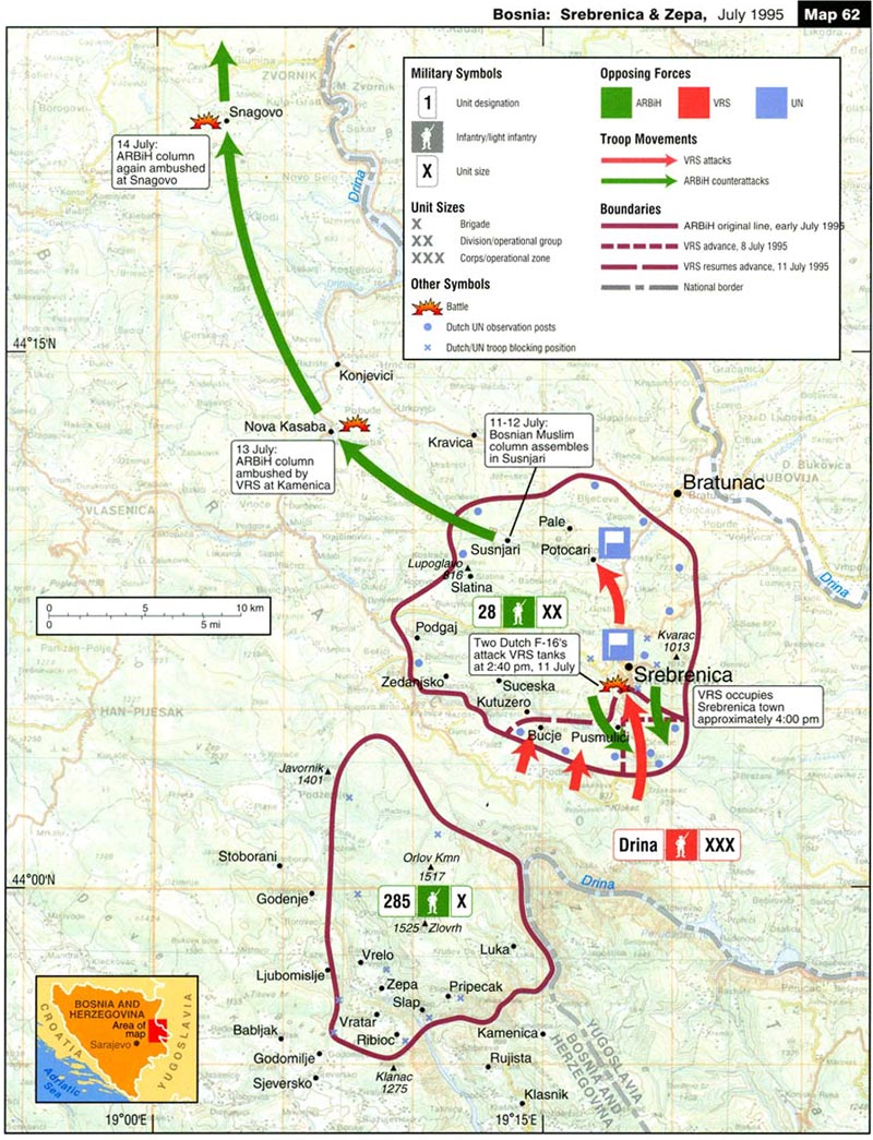 Сребреница је била заштићена зона под контролом Уједињених нација и у њој није требало да буде наоружаних војних формација. То није поштовано и у Сребреници је била врло бројна и добро наоружана 28 муслиманска дивизија. Ова дивизија је имала бројну надмоћност у односу на србске нападајуће снаге 6 према 1 до 8 према 1. Према договору Изетбеговић Клинтон, командно особље 28 дивизије је напустило Сребреницу уочи србског напада. Ту се налази објашњење оружаног сукоба међу муслиманима уочи пада Сребренице где је било преко стотину мртвих, који су убројени као жртве «геноцида”. Требало је да буде бар пар стотина побијених муслимана, па ако то не ураде Срби требало је да то ураде други. Обезбеђене су професионалне убице које су се налазиле у Десетој мултиетничкој диверзантској групи. Тиме се објашњава и разлог присуства САС у Сребреници, јер нису тамо дошли као туристи. Потпуно је нејасно држање холандског батаљона, који је највероватније поступао према добивеним упуствима. После су оптужили тај батаљон за педерастију и то навели као разлог за његово поступање.