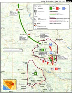 У Сребреницу је ушло око 200 србских војника, а са муслиманске стране било је 10.000 до зуба наоружаних војника. Разлог србског напада на Сребреницу објаснио је Геј Сандс, официр за цивилно-војне послове УНПРОФОР-а. Он је 10. јула 1995. обавестио представнике БиХ да је напад на Сребреницу одговор на напад на сарајевском ратишту.“