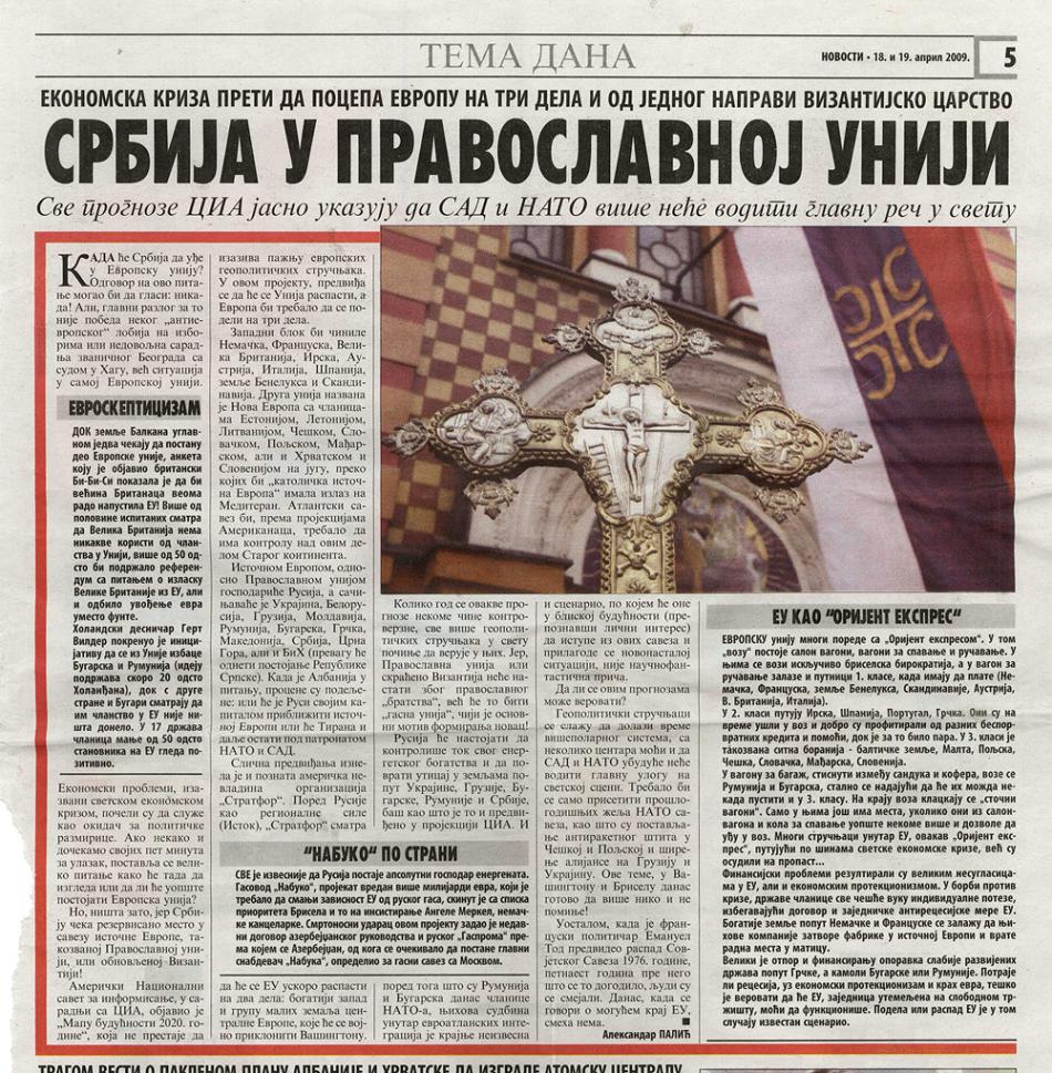 "Србија у Православној унији" чланак Вечерњих новости ...погледајте
