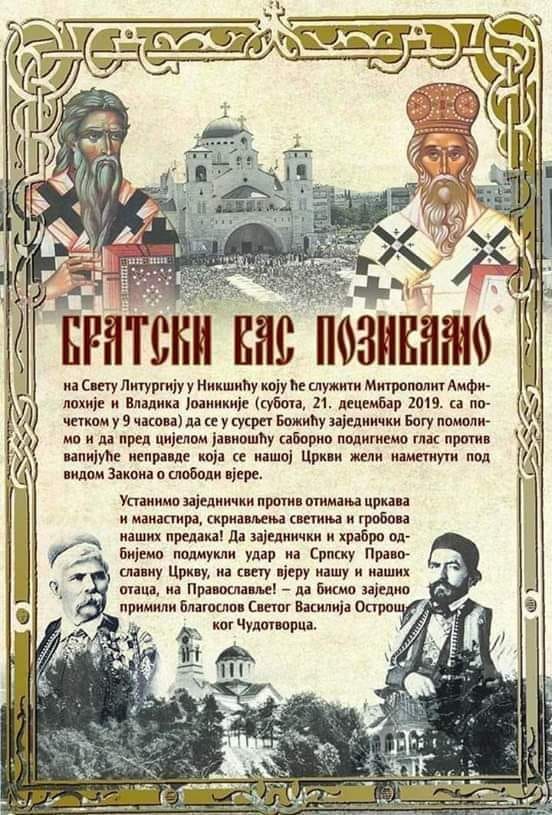 facebook архива 2019: December 31, 2019 at 11:32 AM · Отац Гојко Перовић, ректор Цетињске богословије, упутио отворено писмо Ђукановићу, одговор оца Гојка на Милову изјаву да је „светосавље агресивно". Поштовани г. предсједниче Црне Горе, На сјеверу државе чији сте предсједник, у граду Бијелом Пољу, налази се древна црква светих апостола Петра и Павла. За њене богослужбене потребе је у 12. вијеку, ондашњи хумски кнез, дао рукописати јеванђеље, које се чува до данас. Овај импозантни писани споменик и драгуљ црногорске културе, зове се Мирослављево јеванђеље, по имену поменутог кнеза наручиоца који је рођени стриц светог Саве Немањића. У Беранама постоји манастир Ђурђеви ступови, кога је саградио брат од стрица светог Саве. А на другој страни црногорског сјевера, планина Дурмитор чува топониме Савин кук и Савина вода, као и народна предања везана за светог Саву (рецимо оно о настанку Црног језера…) којима готово да нема броја. У средишњем појасу наше државе, налазе се темељи црногорске духовности, манастири Морача, Пива и Острог. Првог је, средином 13. вијека подигао синовац светога Саве, другог су у 16. вијеку подигли херцеговачки митрополити, и будући пећки патријарси (насљедници светосавског трона) Соколовићи, док је трећи никао подвигом светог Василија Острошког, слава му и милост, током 17. вијека. Острошки манастир је украшен можда и најљепшим фрескама светог Саве, а разлог томе је чињеница да је свети Василије рукоположен за херцеговачког епископа у Пећкој патријаршији, и да је лично боравио у Хиландару (светосавској задужбини) о којој је бринуо до краја свога земног живота. Спуштајући се ка црногорском југу долазимо до престоног Цетиња, гдје је руком протођакона Филипа Радичевића забиљежено да је прва црногорска изведба химне ”Ускликнимо с љубављу Светитељу Сави” учињена 1856. године у присусутву књаза Данила и књегиње Даринке. Овим је настављена традиција документована у књигама из штампарије Црнојевића и касније Божидара Вуковића (крај 15. и почетак 16. вијека) да се свети Сава Немањић у црногорским храмовима прије 500 година, прослављао као заповједна слава, односно нарочити црквени празник! У времену књаза Николе подигнуте су двије сеоске цркве у Катунској нахији (једна на Његушима, друга у Ћеклићима) – светом Сави у спомен! (Поређења ради, у истој тој староцрногорској нахији, ни један други светитељ из нашег рода, није имао храм који му је посвећен – изузев оног светог Петра Цетињског на Ловћену, који смо, да нам Бог опрости, срушили!) Светог Саву као крсну славу, или као прислужбу, светкују бројна братства у Црној Гори (Грахово, Бањани, Пива…), а у конаџијском крају у цетињској општини, људи и данас посте Савину недјељу, пост који траје седам дана, управо од Јовањдана 20. јануара, па до Савиндана 27. јануара. О култу светог Саве на црногорском приморју постоје бројна и разноврсна свједочанства. О њима нам лијепо пише Стјепан Митров Љубиша. Крај мора је и највећи број храмова њему посвећен, а међу свима су најзначајнији манастир Савина (са малом црквом светог Саве – по којој је цио овај крај у Херцег Новом добио име) и саборни светосавски градски храм у Тивту. Када је, крајем 19. вијека, књаз Никола, за свој књижевни рад од србијанског краља Александра Обреновића, одликовани орденом св.Саве, црногорски владар се на добијање ордена захвалио ријечима: Ваше Велич