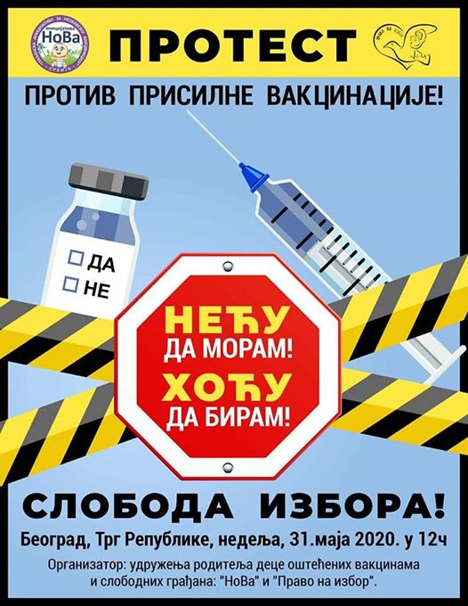 1. јун · Подељено са Јавно Данас је 1 јун, Међународни дан детета. Сетимо се да је дете живо од тренутка зачећа, већ у утроби мајке, што се види јасно на ултразвуку. У Србији (и у многим другим земљама) можете убити дете (са никаквим или малим последицама) првих 9 месеци живота; то се назива абортус. Подигнимо глас против абортуса! 1. јун · Подељено са Јавно Косово и Метохија 30. мај · Након што су људи без вере и душе 1999. године са земљом сравнили манастир Светих Козме и Дамјана у Зочишту, црквено звоно су бацили у бунар. Десет година после, звоно је извађено из бунара. Манастир је данас у потпуности обновљен, а спас од болести у њему траже људи свих вера и нација. 1. јун · Подељено са Јавно Evropske zemlje u kojima VAKCINACIJA NIJE OBAVEZNA: Nemacka, Italija, Holandija, Luksemburg, Velika Britanija, Danska, Irska, Grcka, Spanija, Portugalija, Austrija, Finska, Svedska, Norveska, Kipar, Estonija, Letonija, Litvanija, Svajcarska. Evropske zemlje u kojima je VAKCINACIJA OBAVEZNA: Srbija, Makedonija, BiH, Crna Gora, Hrvatska, Slovenija, Bugarska, Ceska, Slovacka, Madarska, Poljska, Rumunija. Ovde je zgodno dodati i mali update za SAD, gde je vakcinacija obavezna za decu U DRZAVNIM, a neobavezna za decu U PRIVATNIM SKOLAMA. Svako ko malo poznaje geografiju, videce da je vakcinacija obavezna za ISTOCNU, ali ne i za ZAPADNU Evropu. Svako ko iole poznaje ekonomiju, zna koja (i cija) deca pohadaju drzavne, a koja i cija privatne skole u SAD. Obavezna vakcinacija ARHIVA.NEDELJNIK.RS Obavezna vakcinacija Moj Nedeljnik 1. јун · Подељено са Јавно Одржан је изванредан (мада не и савршен) протест удружења грађана за необавезну вакцинацију и Право на избор. Окупило се неколико хиљада људи на Тргу Републике, који су затим кренули у шетњу до РТС-а који је изгледа игнорисао ову манифестацију, што не сме да се ради без обзира да ли говорници критикују РТС и без обзира на то да ли је руководству овај протест симпатичан или антипатичан. 30. мај · Подељено са Јавно Наравно, вакцинација је ствар слободне воље и одређен ризик за онога ко прима вакцину и стога не сме бити принудна. Онај ко је примио вакцину и мисли да је тиме заштићен, нема потребе да се брине због оних који нису вакцинисани. Ни домаћа вакцина не сме бити обавезна, а камоли увозна, комерцијална.