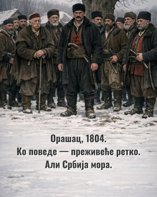 16.1.2026. 15. јануар · После Сече кнезова, Србија је остала без онога што је до тада држало ред. Старе вође су побијене, страх је ушао у села, а дахије су веровале да је народ сломљен заувек. Али управо у том тренутку, када више није било коме да се наређује, појавила се потреба да се одлучује. Не на двору. Не у граду. Већ међу људима који су знали шта значи живети под насиљем. Збор у Орашцу није био позив на славу, већ на ризик. Окупљени нису тражили најпаметнијег, ни најугледнијег, већ онога ко ће издржати притисак који долази. Јер онај ко стане на чело устанка није добијао титулу — добијао је мету. Зато су многи одбијали. Не из кукавичлука, већ из свести шта та одлука значи. Устанак није био тренутак, већ пут без повратка. Када је предложен Карађорђе, није изабран због речи, већ због гласа који је већ имао међу људима. Знали су га као ратника који не преговара са страхом и који не одустаје када ствари крену наопако. Његово прво „не“ било је можда најискренији одговор тог дана. Знао је да вођа устанка не живи дуго ако народ није јединствен. Зато је прихватио тек када је било јасно да се не тражи вођа за један бој, већ човек који ће носити последице сваке одлуке. Орашaц није био почетак пуцњаве. Био је почетак реда. Од тог дана, борба је добила смер. Народ је добио име за своју одлуку. А устанак је добио лице које више није могло да се сакрије. И можда је управо зато Орашaц важнији од прве победе — јер је ту страх први пут замењен одговорношћу. (Glas iz Tisine)