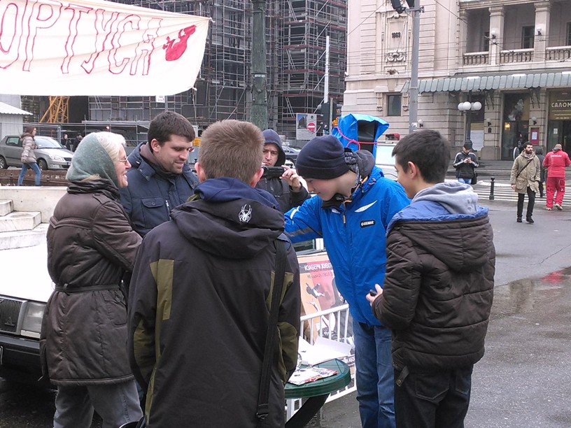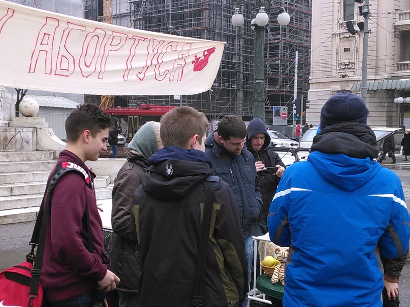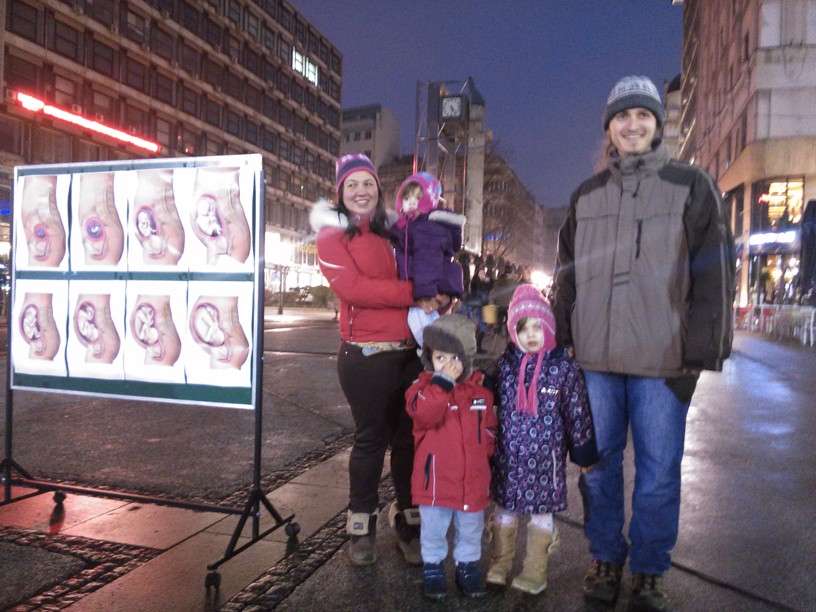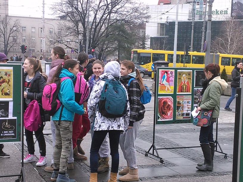 Снег који је падао претходног дана је украсио Београд, а по хладном времену одржана је веома успешна још једна изложба за право на живот нерођене деце. Веома млади људи су били веома радознали да виде шта то изложба поручује и какви плакати и фотографије су изложени. Посебно нам је драго што су читаве породице дошле да изразе своју јасну подршку иницијативи за заштиту живота деце која живе 9 месеци у стомаку мајке и где су изложена бројним ризицима и опасностима и где их закон не штити, а резултат тога је да око 80% зачете деце у Србији на путу од настанка живота до рођења бивају убијена.
