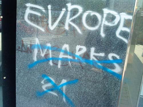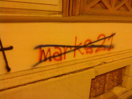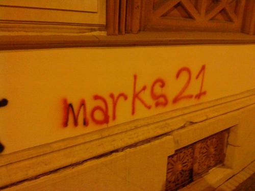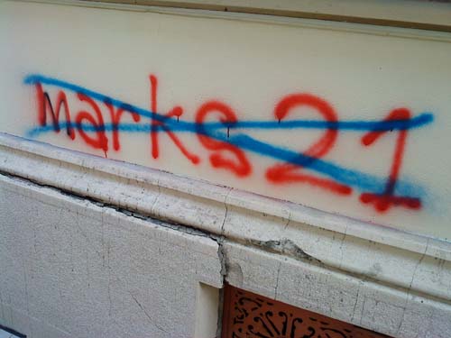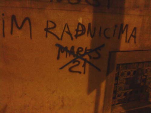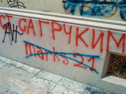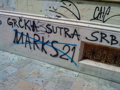 стоп повампирењу мрачне идеологије24. прецртавање марксистичких графитаисторијске лекције смо научили (мај 2010.) мај 2010. Покрет 1389 је у склопу прославе победе над фашизмом, покренуо 11. маја акцију прецртавања марксистичких графита. Ови графити су се појавили истовремено са дубоком економском кризом у Грчкој. Њихови аутори по опробаном историјском, злочиначком рецепту марксиста, покушавају да искористе велике друштвене кризе или ратове зарад постизања својих циљева, а главни од њих је заузимање власти по сваку цену. Југословенски марксизам, тојест титоизам, није презао од тероризма нити од подривања легалног државног поретка, зарад отимања власти, а методе очувања власти су биле још крвавије уз потпуно гушење слобода и права. Марксизам на овим просторима је био отворено анти-српски и анти-Православни уз отворено прикривање геноцида над српским народом током Другог светског рата. Посебну патологију представљају стрељања по кратком поступку, Голи Оток, анти-Црквеност, федерализација српког народа, злочини параполицијских структура, итд. Немамо право на понављање великих историјских грешака и на мирно посматрање повампирења идеологије која нам је много зла нанела, а чији поборници мисле да ће нам се прикрасти преко прашине заборава. Неће проћи! Други део акције био је прецртавање графита у центру града, у Булевару деспота Стефана, у непосредној близине Београдске управе Полиције, где се већ дуже времена налазио анархистички графит "АДОЛФ ПУТИН". Ово злонамерно ругло, лаж и безумље, којим анархисти (девијантна струја комунизма) покушавају да изједначе нацизам, са онима који су дали убедљиво највећи допринос у његовом сламању - прецртано је, ради образа престонице.
