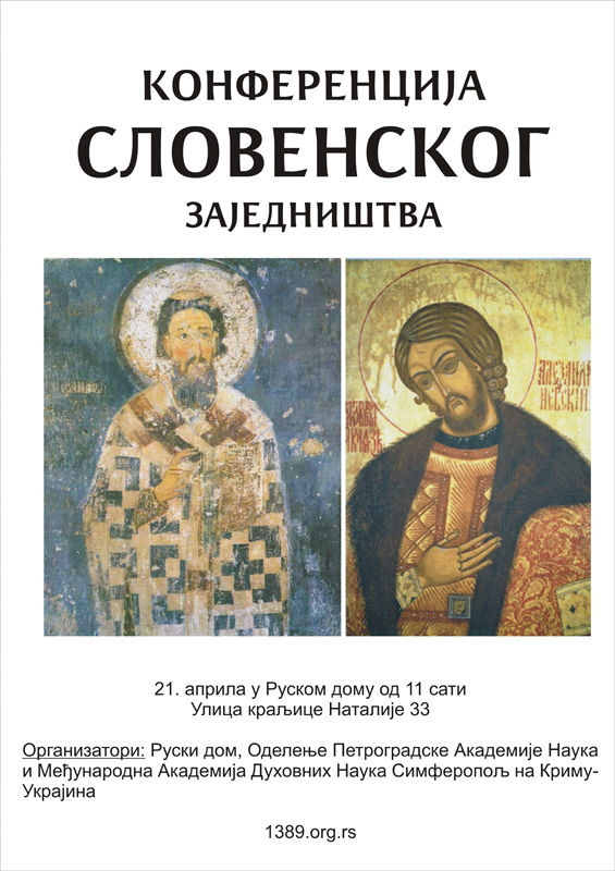21.04.2012. Пред крај Светле седмице 2012. године, која означава радост и победу Христа и Православља и свих верних Цркви Православној, одржана је у Београду у Руском дому конференција словенског заједништва. Конференција је веома важна, јер представља цивилизацијски, културолошки, историјски и научни одговор на заблуде и агресивне притиске евро-атлантизма. Место одржавања конференције говори о томе да је словенска идеја заиста жива и да постоји узајамност - што није случај са евро-атлантизмом који је једнострана и репресивна идеологија. Конференција је организована на међународном научно-академском нивоу: две академије, руске из Санкт-Петерсбурга и свесловенске из Симферопоља, Украјина уз организациону подршку Центра за науку и културу Руске Федерације (Руски дом) у Београду и невладине организације Покрет 1389. Медији су игнорисањем овог веома важног друштвеног догађаја показали да су под хладном цензуром "Европе". Изнето је током конференције много чињеница које су расветлиле ширину словенског света и многобројне покушаје ослобођења од римско-германске доминације, као и позитивне перспективе последњих година. Наглашено је током конференције да је ипак правац Православних интеграција важнији и превасходнији од родног (етничког) повезивања.