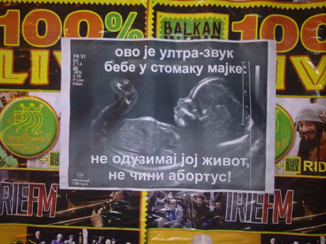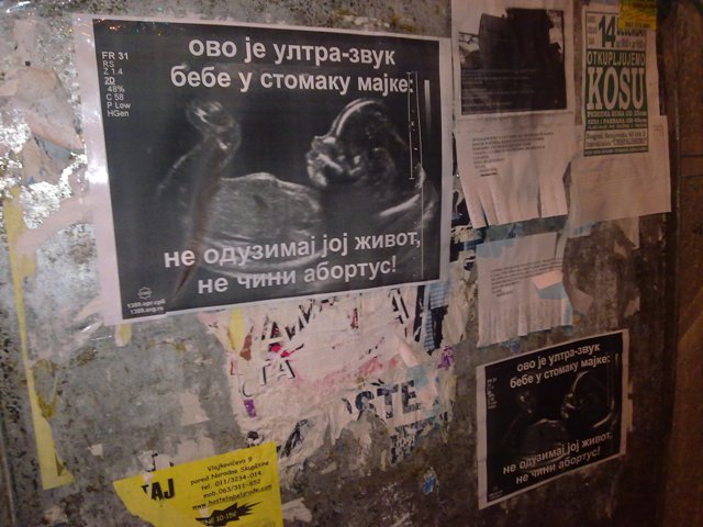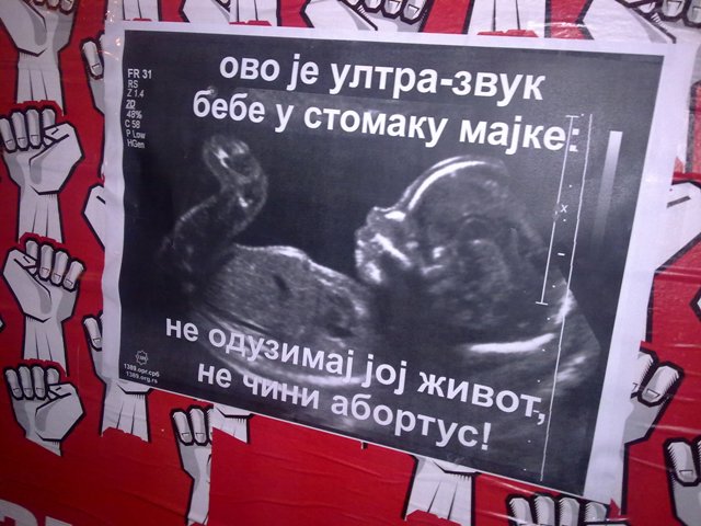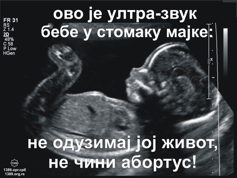 абортус или Србија 36. Ултра-звук као доказ животаПлакати показују живот бебе у мајчином стомаку