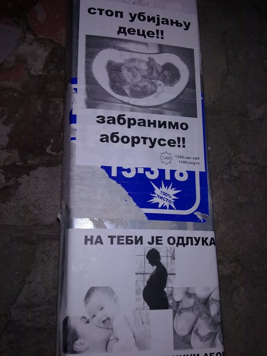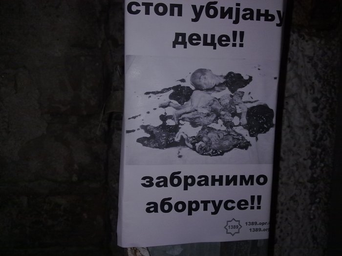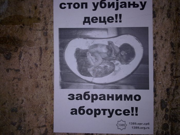 1000 црно-белих налепница А6 формата, јануар 2014. Међународна иницијатива за забрану абортуса делује на простору Православних држава са циљем да се заштите животи нерођене деце и њихових мајки. Због скромних средстава плакати су израђени као црно-беле налепнице А6 формата у 1000 примерака. Фотографије су можда некоме шокантне, али истини се мора погледати у очи! Абортус је убиство! То је кристално јасно. Плакат 1 у већој резолуцији 2,5 МБ - преузмите Плакат 2 у већој резолуцији 2,6 МБ - преузмите Међународна иницијатива за забрану абортуса - детаљније Изведене акције - погледајте