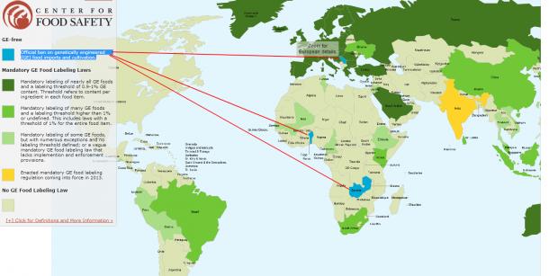 http://vaseljenska.com/misljenja/srbija-izuzetak-na-svetskoj-mapi-gmo-ne-predajmo-se/ Једино су три државе обележене плавом боје сасвим забраниле ГМО, а међу њима и Србија! :-) http://centerforfoodsafety.org/ge-map/# На слици је приказана светска мапа која објашњава које земље су у којој фази ГМО развоја-тровања. Са леве стране се налази табела која описује различите боје којима су земље света обележене. Србија је обележена плавом бојом као једина у Европи у којој је званично законом забрањена ГМ храна, увоз и узгој. Осим Србије још су две афричке земље које имају овај статус: Република Бенин (у западној Африци) и Замбија које заједно чине три земље у свету са овим статусом. Погледајте мапу директно на сајту Центра за сигурну храну (Center for Food Safety). Ова мапа је наравно подложна променама, и стално се мења у зависности од политика владајућих коалиција и притисака који им се намећу од креатора светске политике, пре свега САД и ЕУ! За још детаљније податке о мапама, и статусима посетите сајт http://www.gmo-free-regions.org. То значи да ћемо по питању хране (сировина – семе) бити зависни од приватне фирме Монсанто (семена која она производи) и сличних светских компанија које су главне у свету за трговину сировинама за исхрану. Још 5-6 великих компанија је у игри. Иначе иза тих компанија стоји машинерија светске политике, која креира међународне односе, спроводи глобализацију и успоставља светску владу. Тако данас имамо „Великих Шест“ житних компанија које чине главни житни трговачки картел. То су: Cargill (са седиштем у Минеаполису и Женеви), Continental (из Њујорка), Louis Dreyfus (из Париза), Bunge and Born (са седиштима у Бразилу, Холандији и Холандским Антилима), Andre (Швајцарска) и Archer Daniels Midland/Topfer (Илиноис – Хамбург). Изградња силоса за жито у Украјини, коју је себи приписао МК Комерц је један такав посао који је извела ова олигархија како би сељацима у Украјини преузела житарице и ставила их под своју контролу. Наши „велики“ тајкуни су само ситни пилићари ове старе олигархије, а многи у ствари и не знају за кога у великој пирамиди раде. … Сад схватате зашто Србија која може да храни пола Европе, храну мора да увози. Тако су све мале земље у ствари вазалне земље. Оне морају увозити храну преко ових картела по њиховој цени или могу умрети од глади. Индивидуална мала пољопривредна газдинства су у Србији последњих десет година највише уништена. И ту Србија није усамљена. На овај начин се постепено врши највећи геноцид икад спроведен над човечанством. Самоубиство на одложено. Да би то схватили требамо да се упознамо са неким општим чињеницама, а које су за обичан народ неинтересантне.. или недосутпне широј јавности. Обично их нема у дневно-политичким вестима и мејнстрим медијима или ако се помену то је врло неповезна прича да би је разумели просечни читаоци. „Ко контролисе храну тај контролисе свет.“, рекао је Хенри Кисинџер Овај видео показује колико је овај начин рата и контроле људи (као и контрола броја светске популације) драматичан. Боримо се до краја, јер нам то једино и преостаје, јер нам је то од Бога остављено, од предака пренесено и на то апсолутно право имамо. Сачувајмо своју земљу, своје старе сорте. Пазимо се превараната који нам нуде разне отпорне хибриде који дају веће приносе и разне намазане приче које одвлаче пажњу од старих аутохтоних сорти. Решења постоје. Она су у нама, у народу. Пре свега треба пробудити свест људима, значи а