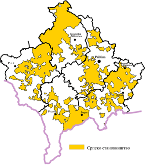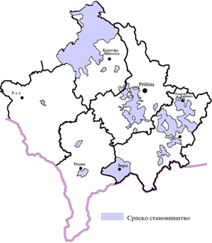 Обилић. Према подацима Организације за европску безбедност и сарадњу (ОЕБС), након оружаних дејстава на КиМ, 1999. године у општини Обилић, живело је 3.600 Срба, који су, осим у самом граду, били насељени и у селима Милошево, Бабин Мост, Племетина, Црквена Водица и Јанина Вода. Општи подаци: