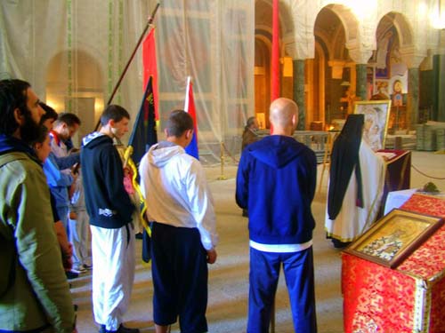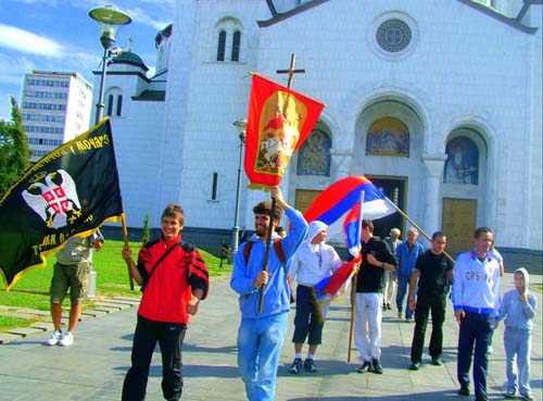 Крстни ход за Републику Српску 2010Други по реду, Крстни ход за Републику Српску је успешно завршен! Манифестација је изведена по данима и етапама, како је и планирано. Ходочашће је започето молебаном за путнике, који је по благослову старешине Храма светог Саве, оца Радивоја Панића, служио отац Данило. Затим се кренуло преко Славије, Немањином улицом, поред Аде, старим путем за Обреновац. Учесници су носили икону Пресвете Богородице Донске, барјак крсташ светог великомученика Георгија, заставе Србије, Републике Српске, Византије, царске Русије. Домаћин у Обреновцу је био Соколски дом, а у Шапцу покрет ратних ветерана. Етапе су по данима биле дужине: 30 + 55 + 20 + 25 км, а напредовање није чак ни упорна киша успела да прекине. Крстовдан је прослављен светом Литургијом у мачванском граду Богатићу, након чега се кренуло у савладавање пута за тај дан. Реку Дрину и наметнуту, вештачку границу између Србије и Републике Српске прешли смо код прелаза "Павловића ћуприја". Граничне полиције Србије и РС су се понашале веома коректно, задржавајући кратко учеснике Крстног хода ради рутинске провере личних карата (пасоше намерно нисмо понели). Исто поподне смо се обрели у центру Бијељине поклонивши се Часном Крсту у новоизграђеном храму - чиме је Крстни ход успешно окончан. Касније смо обишли центар града и посетили манастирски комплекс и двор владике Василија у центру Бијељине. Захваљујемо се: Господу Богу, свештенству Српске православне цркве, Соколском дому, покрету ратних ветерана, нашим родитељима, рођацима, пријатељима, добротворима, Фонду јединства Православних народа, Српско-руском економском савезу и свима који су помогли да се Крстни ход за Републику Српску 2010 успешно реализује. Видео записи са Крстног хода за РС 2010 - погледајтеПлакати Крстног хода за РС 2010 - погледајтеКако је изгледао Крстни ход за Републику Српску 2009 можете видети - овде