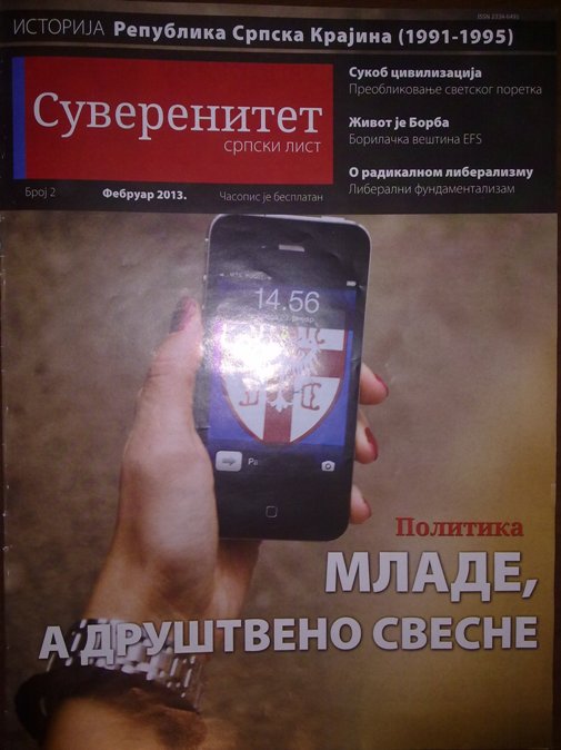 Оно што је важно је то што се лист зове "Суверенитет", а у њему се промовишу Српска напредна странка и Нова Србија преко својих народних посланика Јелене Будимировић и Невене Аџемовић са којима је лист "Суверенитет" сачинио и објавио интервју. Познајући странке у Србији, јасно је да до ових интервјуа не би дошло без одобрења врха поменуте две владајуће странке, које су иначе жестоко нарушиле суверенитет и интегритет Србије потписивањем Бриселског споразума априла 2013. којим се Срби на Косову и Метохији препуштају властима у Приштини. Какав је то национализам и "суверенитет" листа "Суверенитет"?