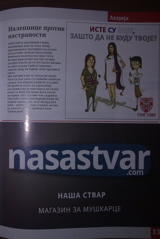 Од Мише Вацића су се оградиле скоро све родољубиве организације и прекинуле контакт са њим, али очигледно да је он погодан инструмент за сејање смутње, хаоса и раздора у Србији. Лист је у боји и штампа се, како пише на 2. страни у 4 000 примерака, па се питамо одакле човеку (који колико нам је познато никада ништа није радио) толики новац? Квалитет листа је такав да не завређује никакав коментар, нека се тиме баве други.