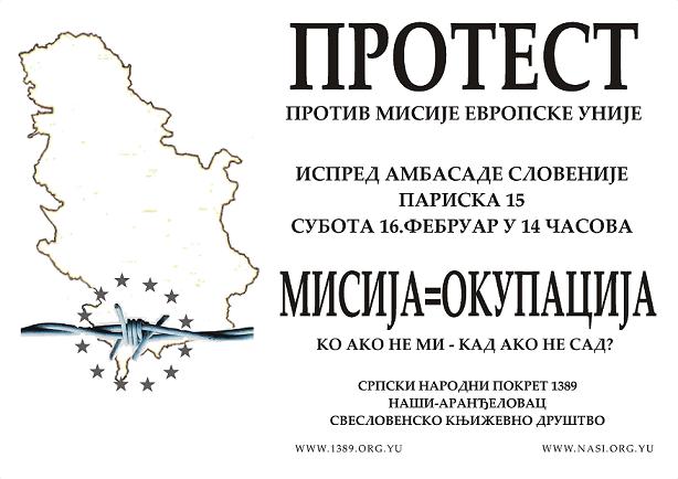 ПРОТЕСТ ПРОТИВ МИСИЈЕ ЕВРОПСКЕ УНИЈЕ