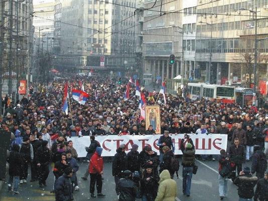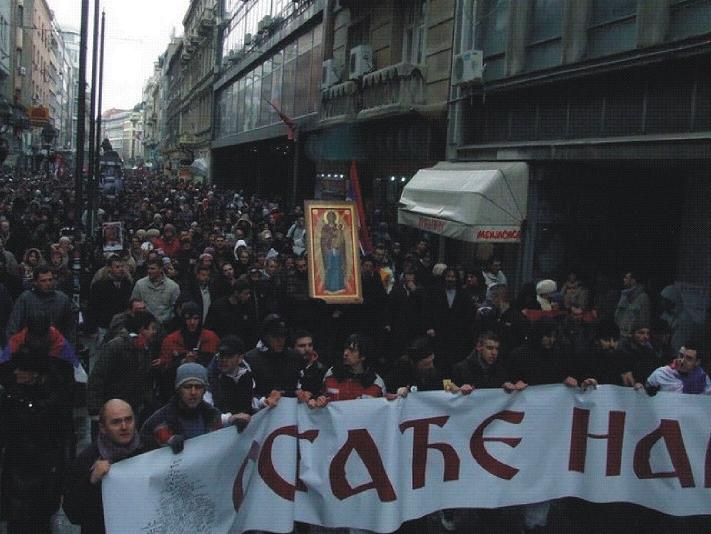 Скуп су организовалa бројна српска родољубива удружења: Српски сабор Двери, Наши – Аранђеловац, Свесловенско књижевно друштво, Друштво пријатеља манастира Ђурђеви Ступови, Удружење студената Правног факултета Номоканон, Хуманитарна организација Браниоци отаџбине 1998-1999, навијачке групе, Српски синови и Српски народни покрет 1389, уз подршку других бројних патриотских медија и организација, нека не замере они који нису поменути, Бог ће их наградити. Утисци су прелепи, али помућени потпуно догађајима следећег дана. Најбитније, показали смо слогу кад је најбитније, одлучност и снагу. Окренули смо леђа председавајућем Европске уније и окренули се ка Храму Светог Саве, српски народ се враћа Богу, обнавља Завет и узима свој Крст - Косово и Метохију,... негде у даљини чују се звона... наша престоница је посвећена Пресветој Богородици, а наш народ Господу Богу. Још једном су западне земље разбиле нашу илузију да смо савезници, нама Православним Хришћанима је забрањено да мрзимо, нека им Бог опрости. Тамо иза пунктова, тенкова и бодљикавих жица у Бањској, Грачаници, Дечанима, монаси се моле за цео свет.