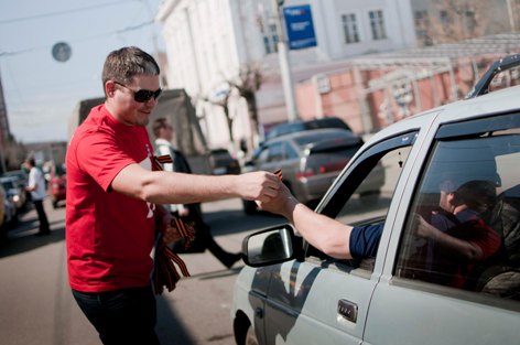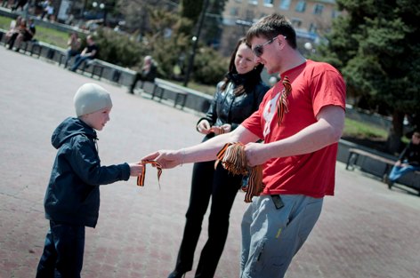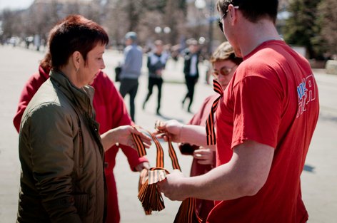 Акцију "Георгиевская ленточка" спроводи подмладак Јединствене Русије - "Молодая Гвардия". Ради се о традиционалној, родољубивој акцији руских и других антифашиста, која се састоји у поклањању двобојних ленти светог Георгија. Овај обичај је нарочито изражен око 9. маја, Дана победе над западноевропским фашистима и нацистима у Другом светском рату, победи којој је убедљиво највећи допринос дала Русија са око 25 милиона својих жртава. Лента светог Георгија је символ победе и јединства народа. Акцију су извели чланови покрета "Молодая Гвардия", а многи од њих су потомци хероја из Другог светског рата. Акција се одржава у око 30 држава, и она нам помаже да не заборавимо како ужасна цена је плаћена за заустављање расизма, империјализма и тоталитаризма, који није на време спречен.