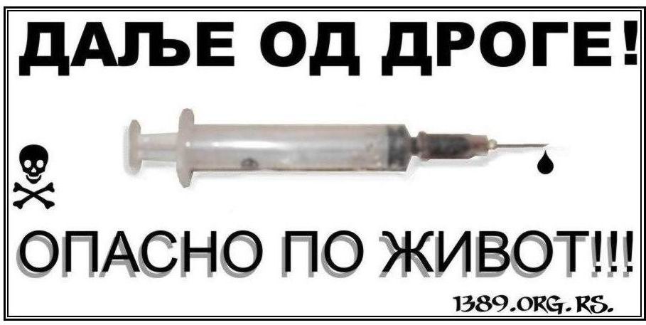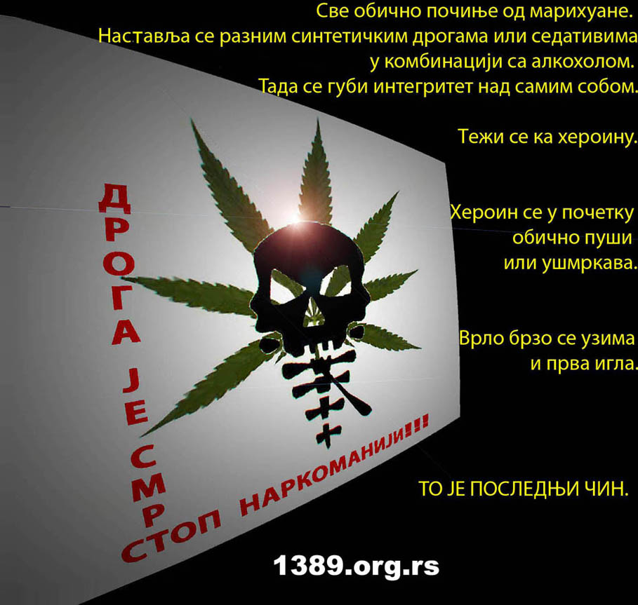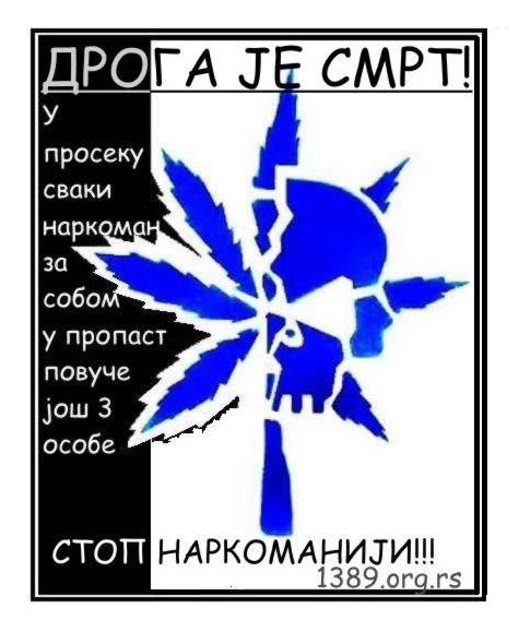 Кренимо сви заједно у борбу против зла званог дрога које уништава многе животе у Србији и свету, потрудимо се да спречимо стварање нових зависника и да помогнемо онима који су се већ уплели у смртоносну мрежу наркотика. Не смемо бити равнодушни према наркоманији, не смемо затварати очи пред овим проблемом, образујмо своје суграђане, сународнике да препознају опасност.
