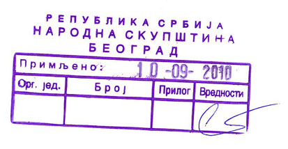 допис председнику Скупштине 10.09.2010.