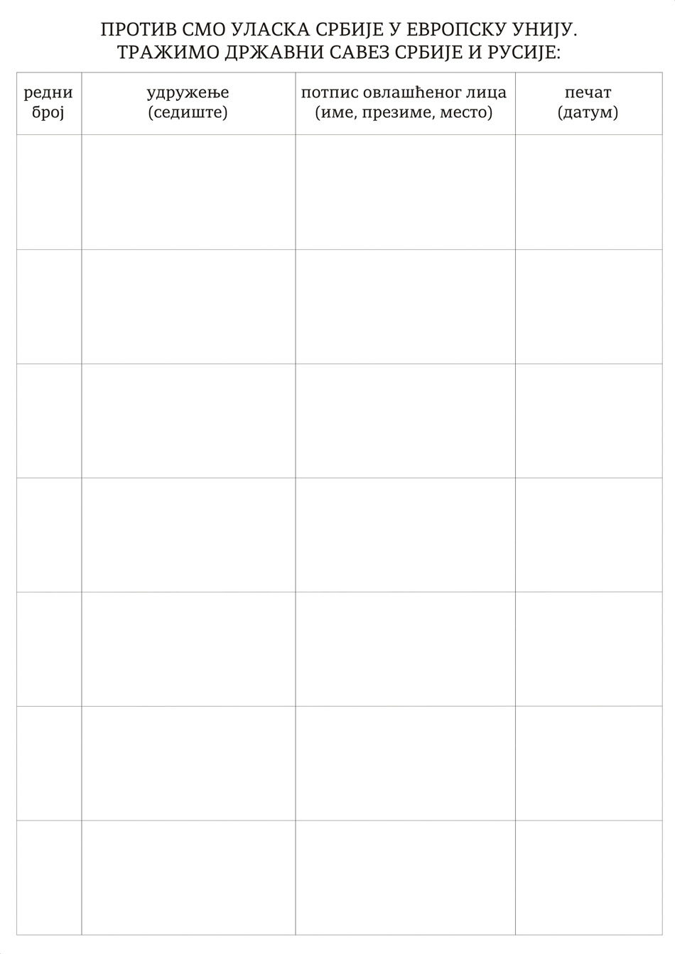 Образац кампање "Не ЕУ, за државни савез Србије и Русије"