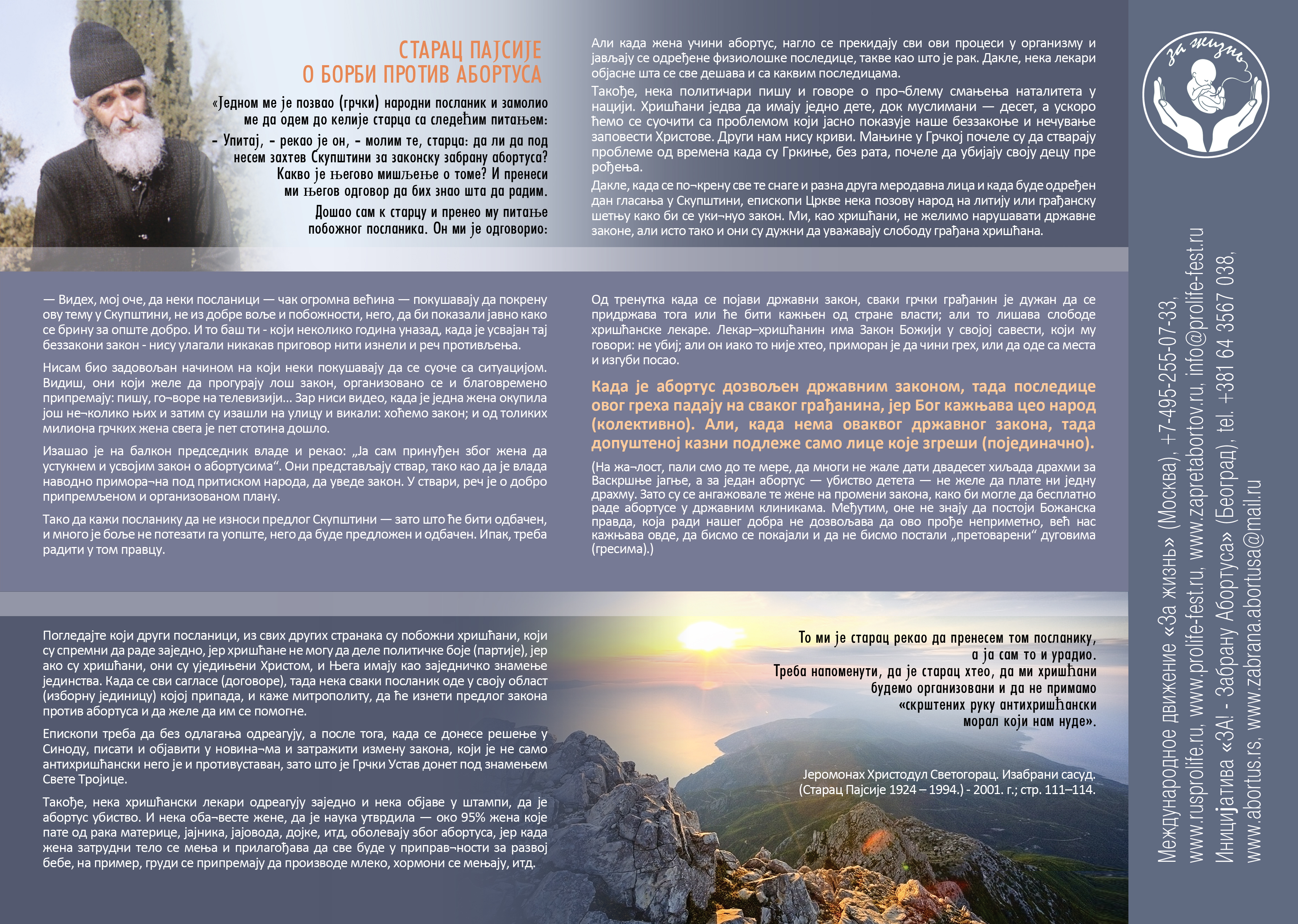 План Светог старца Пајсија Светогорца за забрану абортуса