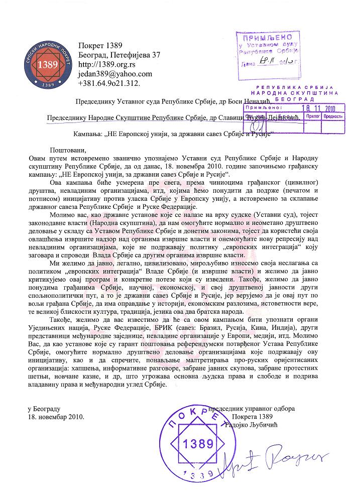 Почетак кампање "Не ЕУ, за државни савез Србије и Русије"