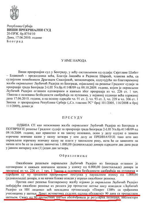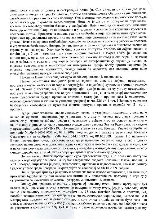 Отворена диктатура евро-унијатског режимаНаставак репресије против "1389"3. септембра 2010. покушали смо, по закону, да пријавимо у полицијској станици Стари Град, један мали пункт за прикупљање потписа против одржавања геј параде. Наш представник, угледни грађанин, породичан побожан човек, економиста, дочекан је као криминалац! Речено му је да ће сви чланови "1389" који се појаве у Кнез Михаиловој улици, да скупљају потписе против одржавања геј параде бити одмах похапшени! Начелник Полиције је још додао да су за 1389 све јавне активности забрањене. Очигледно да врх Полиције ради противзаконито по налогу режима. Ускраћена су нам основна права и слободе противуставно и противзаконито, како би се на силу спречио Покрет 1389 да пренесе грађанима своје ставове. Поред ове репресије, стижу и позиви за издржавање затворске казне, због законито припремљених и изведених протестних шетњи против уласка Србије у ЕУ и НАТО. Режим покушава застрашивањем и казнама да спречи јавну критику Европске уније и тиме заводи евро-тоталитарну диктатуру, где се безразложно кажњавају, као у комунизму, они који критикују постојеће друштвено и политичко стање. Режим Бориса Тадића тиме показује своје недемократско и ненародно лице. Казне и претње нас неће уплашити нити ће дрска, арогантна режимска сила зауставити све шири фронт противника уласка Србије у ЕУ. Терором против 1389 - погледајте