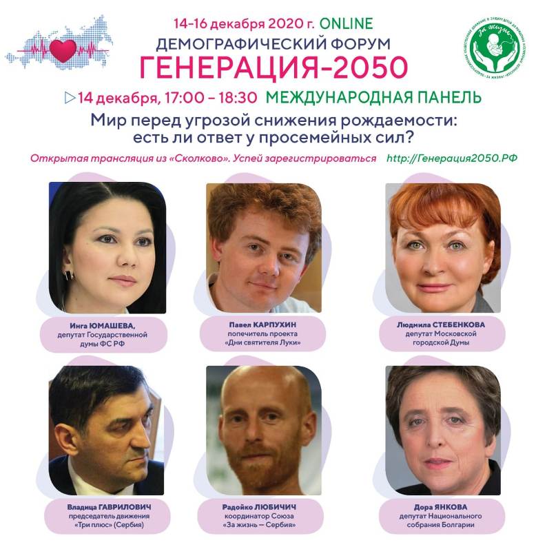 вести са фејсбука: Путин: 5.000 рубљи за свако дете до 7 година Председник Русије Владимир Путин потписао је указ по коме све породице у Русији са малом децом добијају за Нову годину по 5.000 рубљи за свако дете до 7 година живота. Ова новогодишња честитка је знак захвалности и поштовања према породицама са малом децом, али и подстицај другима у Русији да се осмеле у правцу рађања и добијања потомства и у условима пандемије корона вируса. Наши пријатељи и сарадници из организације За жизнь Сергеја Чеснокова су упутили предлог Путину да и све труднице добију исти износ јер оне носе у стомаку живо дете, такође млађе од 7 година. То је већ 6 уплата од јуна 2020. због карантина и ванредног стања, што укупно износи 30.000 рубљи за свако дете до 7 година и 10.000 рубљи за свако дете до 16 година. То је конкретна подршка породицама са малом децом и демографији земље. Путину предложили распространить выплату 5 тыс. рублей на беременных женщин NEWS.RU Путину предложили распространить выплату 5 тыс. рублей на беременных женщин 13. децембар у 19:22 · Подељено са Јавно Организатори и учесници велике демографске тродневне конференције "Генерација 2050" у Москви 14-16. децембра. Два представника Србије: Владица Гавриловић (Покрет за децу Три плус) и Радојко Љубичић (Савез за живот). http://generation2050.demplat.ru https://sk.ru/technopark/ https://rusprolife.ru http://prolife-fest.ru https://gazprom.ru http://kremlin.ru https://abortus.rs (и још 24 слике) 13. децембар у 01:19 · Подељено са Јавно Ево нас двоје из Србије, ако Бог да, на великој руској тродневној демографској конференцији Генерација 2050 у Москви од 14. до 16. децембра. Конференција је он-лајн, водитељ међународног панела је депутат (посланик) Инга Јумашева. Директан пренос, стриминг на youtube у понедељак 14. децембра преко линка, наш панел је од 3 сата по нашем времену: https://youtu.be/8KM90t1cs0M Центар транслације првог дана је Технопарк Сколково, један од највећих и најмодернијих научних центара Русије. http://xn--2050-43droa2a1c8a3e2f.xn--p1ai/ https://sk.ru/technopark/ https://rusprolife.ru http://prolife-fest.ru https://abortus.rs