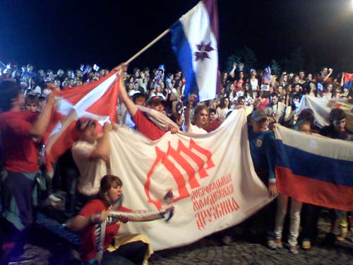 Први Руско-Српски камп одржан је у Београду од 22. до 25. маја на обалама Дунава. Домаћини удружењу НАШИ из Русије су били Делије, Српска народна одбрана у Отаџбини, Свесловенско књижевно друштво, Наши - Аранђеловац, Двери, локална заједница и црква у Новој Пазови, Народни Покрет 1389 и други. Упознавање Србије, дружење, боравак у природи, учење језика, размена искустава и много другог су обележили дивне дане. Упркос јакој киши и веома касном доласку, младе Русе је уз песму и заставе дочекало неколико десетина вршњака из Србије које ништа није могло поколебати нити одвојити од своје православне браће. Из дана у дан поверење и блискост су расли кроз многе дирљиве тренутке када је откривено велико пријатељство два народа. Растанак нас је растужио, али је оставио и одлучност да се мора много више радити на упознавању младих Србије и Русије кроз многе заједничке акције и пројекте. Надамо се скором поновном сусрету.