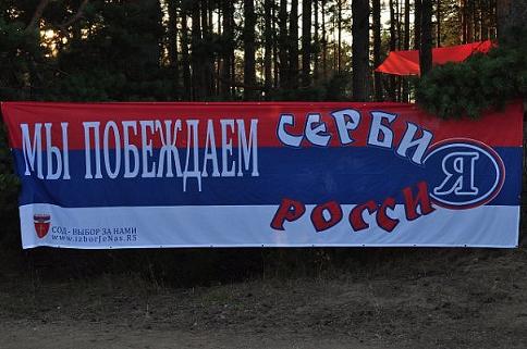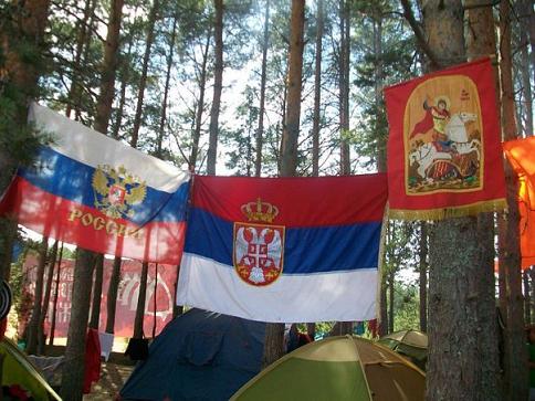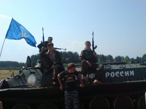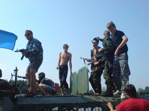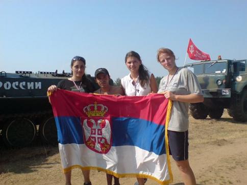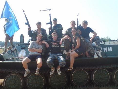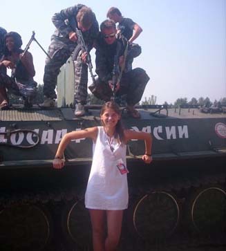 лево: Српкиње са Русима на оклопном транспортеру