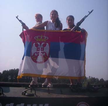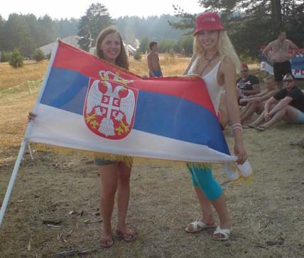 лево: Рускиње са српском заставом