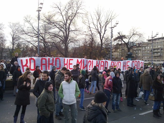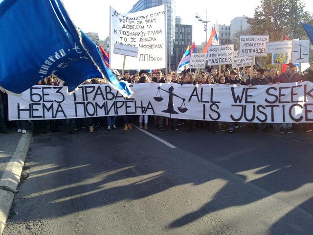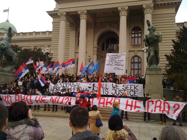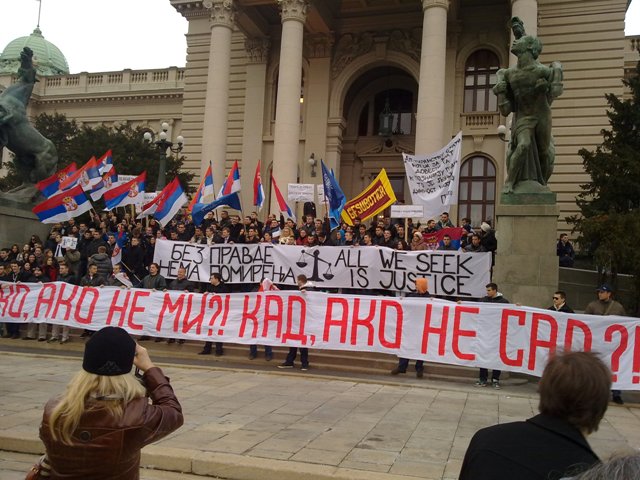 Београдски студенти против Хашког анти-суда17.01.2013. Српски народ има веома лошу и опасну особину да брзо заборавља важне догађаје. Стога подсећамо на срамне пресуде хашког фашистичког анти-суда којим су ослобођени хрватски ратни злочинац Анте Готовина и албански терориста Рамуш Харадинаји. Такође подсећамо и на масовни протест београдских студената против Хашког не-суда 4. децембра 2012.: