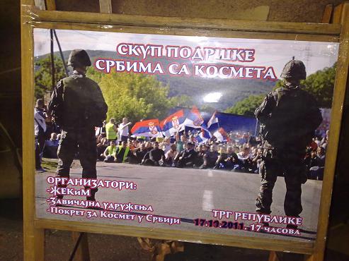Већ неколико месеци сваког 17. у месецу (симболика погрома Срба 17. марта 2004.) у 17 сати на Тргу републике, у организацији Удружења жена Косова и Метохије - ЖЕКиМ, одржавају се скупови подршке Србима на барикадама. 17. новембра је неколико стотина грађана присуствовало скупу на Тргу републике где је постављена импровизована барикада.