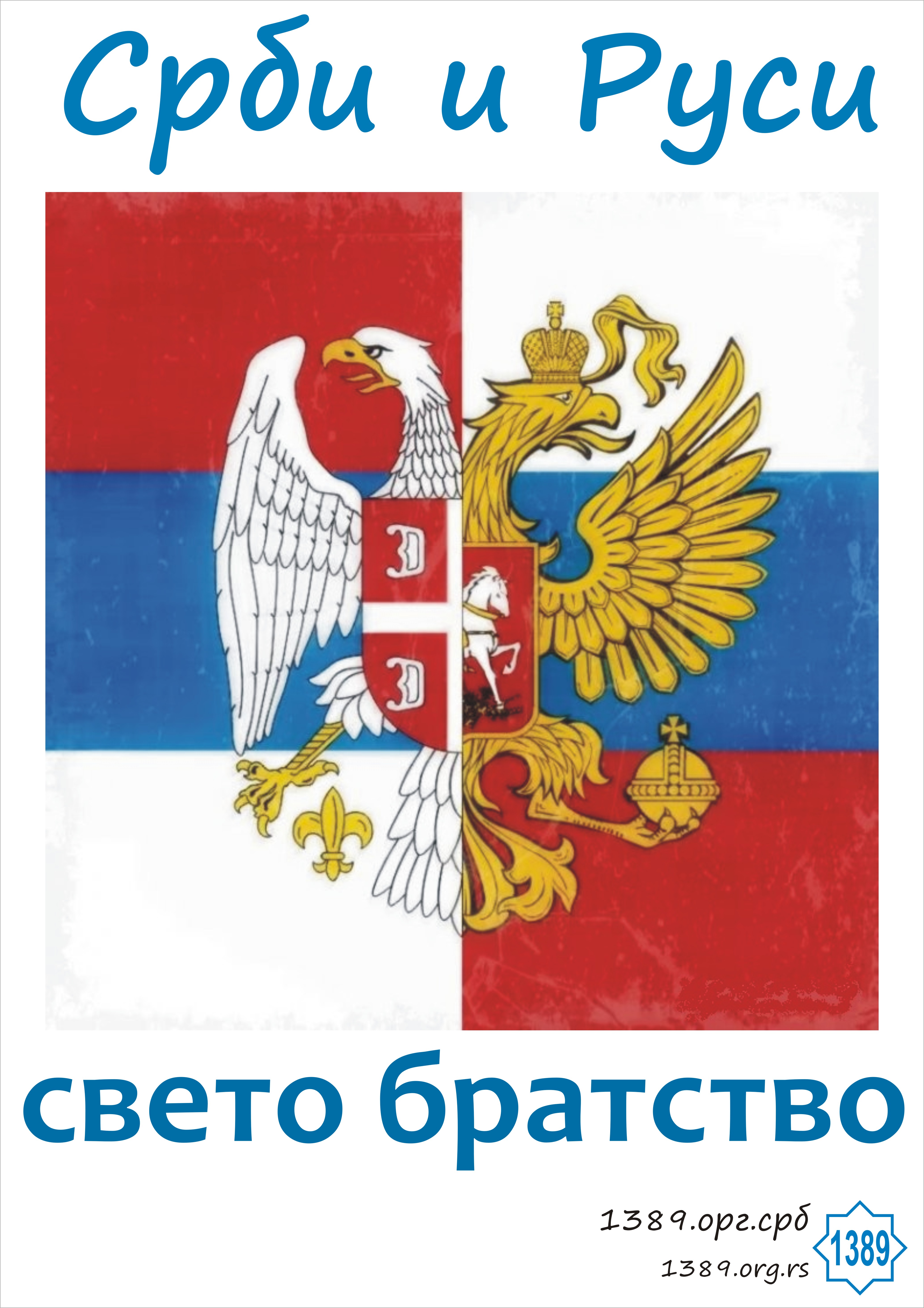 (налепнице) Акција носи једну од основних порука Покрета 1389, поруку која се понавља, а овога пута у нешто измењеном формату. Ова акција је по тиражу и другим параметрима скромна, али по смислу и вредностима велика. Ту смо да стално сведочимо велику истину о светом братству српског и руског народа, братству које је грађено вековима и које желимо да предамо као драгоцено наслеђе следећим покољењима, генерацијама.